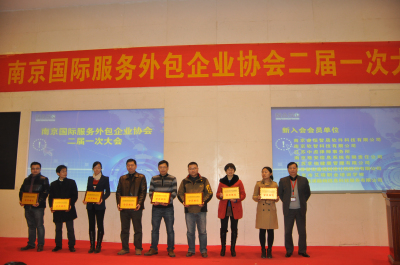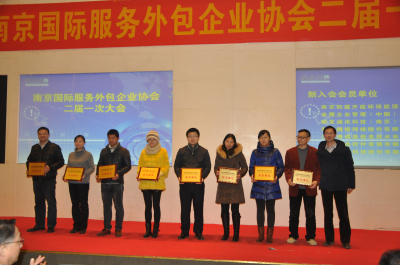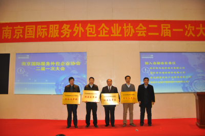 會上還進(jìn)行了新一批副會長、會員單位的授牌儀式。在接下來的服務(wù)外包百企巡展活動中,華為南研所、江蘇外企人力資源公司、三江學(xué)院、南京國圖信息公司、豪成培訓(xùn)和合榮欣業(yè)公司的負(fù)責(zé)人分別上臺進(jìn)行了交流發(fā)言。